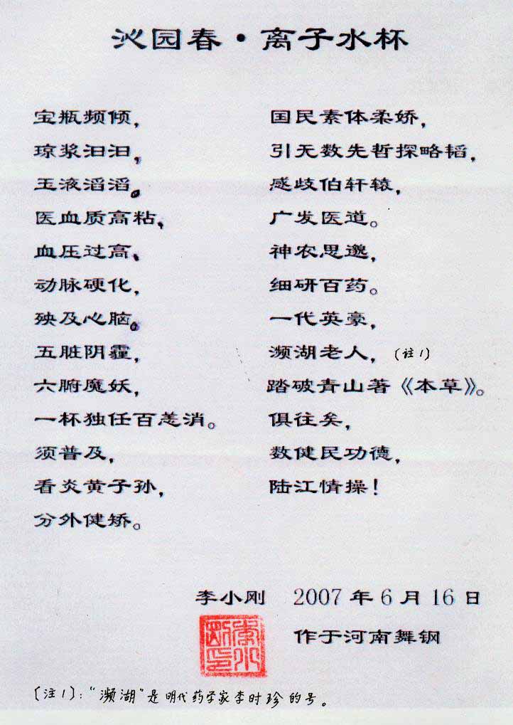 3. 詳細了解請上網(wǎng),可見臨床報告,鑒定證書、專家評說、治病機理、用戶反饋、題詞、詩歌、錦旗等彩色掃描件,被譽為"神奇水瓶"。